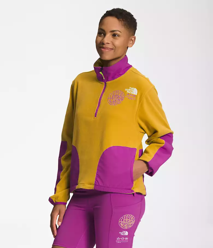 μέρος της συλλογής μας ρούχων, το γυναικείο τζάκετ φαντασίας με φερμουάρ χρησιμοποιεί ζεστό, 100% ανακυκλωμένο ύφασμα φλις polartec. Διαθέτει επίσης ανθεκτικές, υδατοαπωθητικές επικαλύψεις για να σας προστατεύουν κατά τη διάρκεια των μονοπατιών σε δροσερό καιρό ή στις εκκινήσεις νωρίς το πρωί.